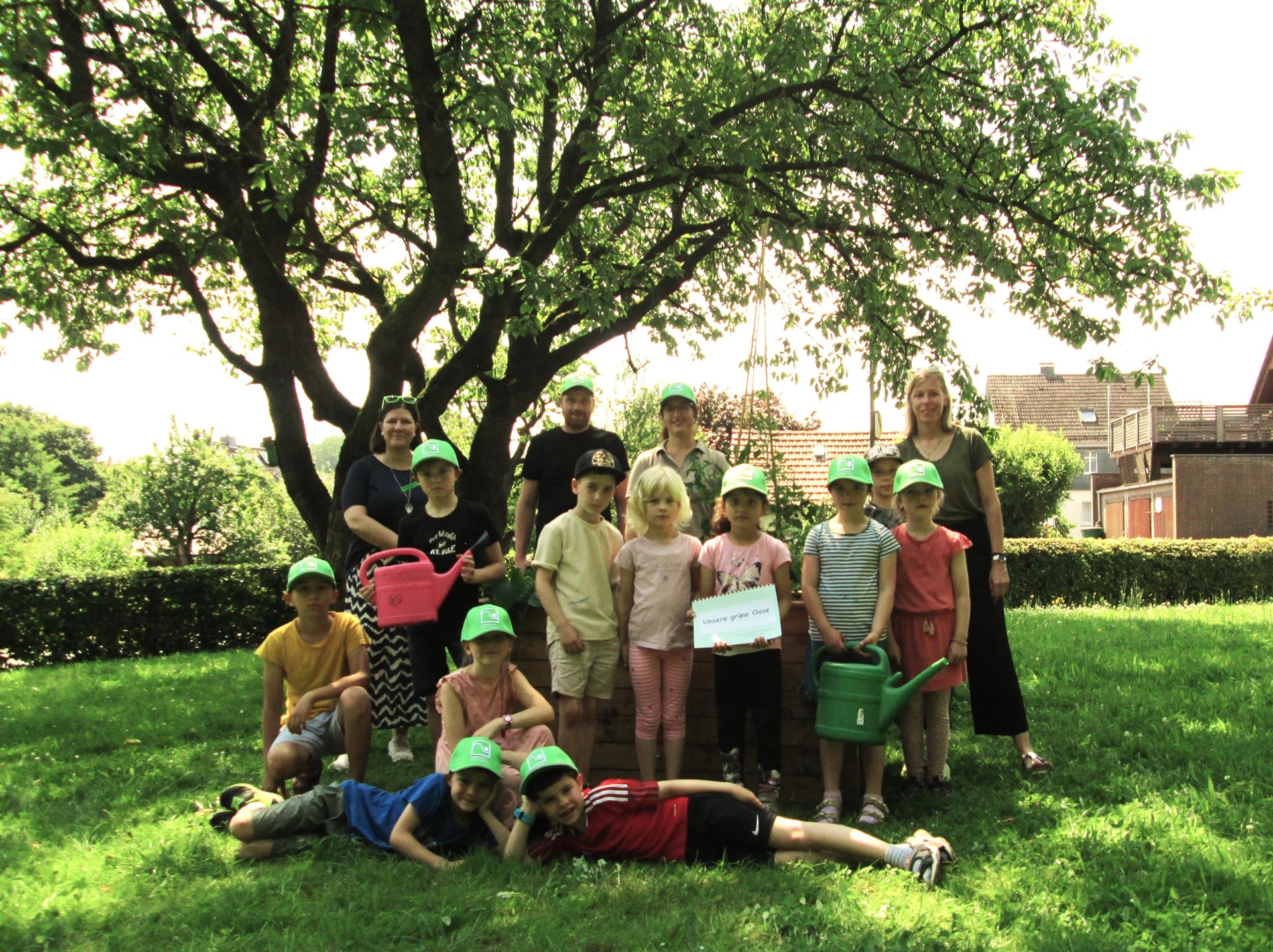 „Wir wünschen uns Hochbeete, damit alle Platz zum Gärtnern haben,“ schrieb Lehrerin Katharina Dickhaut im Namen der Kinder in das Bewerbungsformular. Die Schulgarten-AG der Hochlandschule entwarf keative Zeichnungen von Kräuter- und Hochbeeten mit bunten Blumen und Bienen. Aus über 150 Einsendungen wurden sie als einer der glücklichen Gewinner ausgewählt.