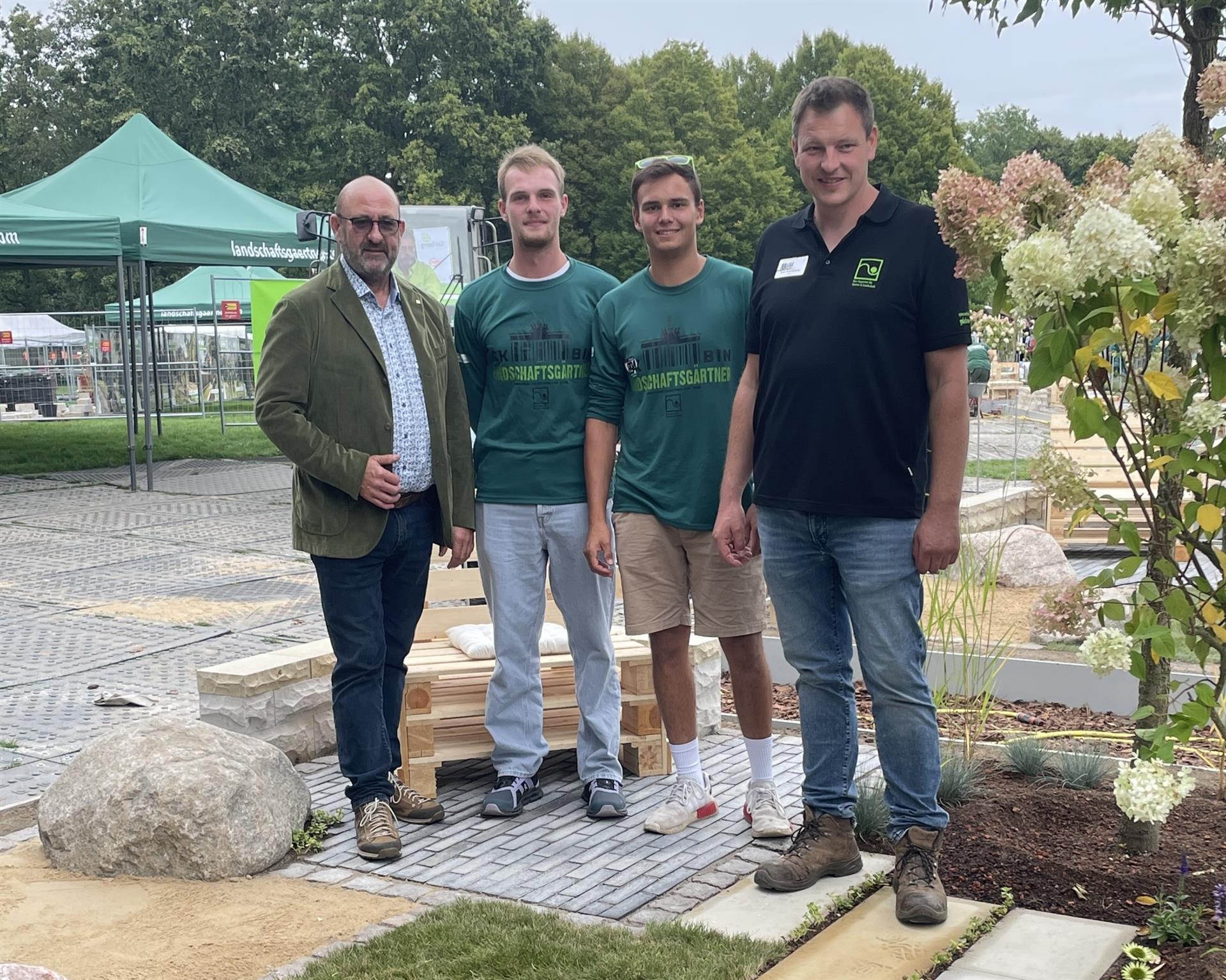 Foto1 (FGL): v.l. FGL-Präsident Karsten Hain, Eike Weber, Antonius Theil und Juror Tom Steinbrück (BTS Gartenwerk GmbH, Erfurt)