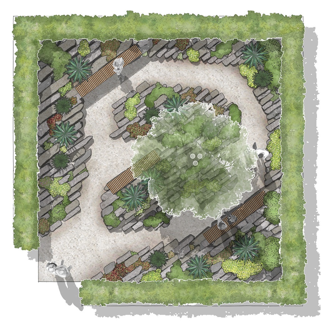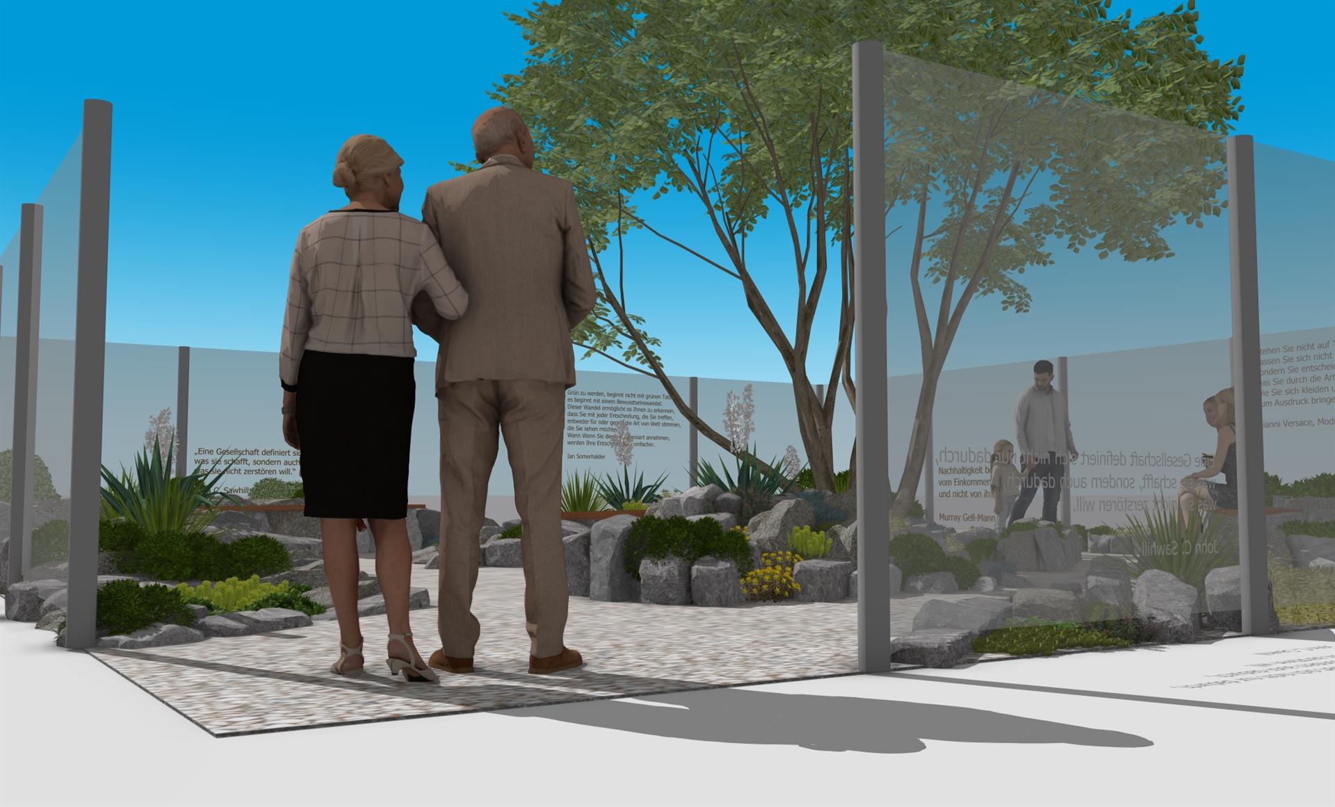 Was andernorts als Abbruchmaterial endet, erhält hier eine neue Aufgabe: Betonbruch wird zu skulpturalen Steinsetzungen, Betonrecyclingsplitt zu einer pflegeleichten Wegedecke, ausgediente Türen zu überraschenden Sitz- und Gestaltungselementen. So entsteht eine moderne, naturnahe und zugleich kostenoptimierte Gartenlandschaft, die zeigt, wie attraktiv Nachhaltigkeit umgesetzt werden kann. Grundlage sind Prinzipien des Recyclings im Garten- und Landschaftsbau sowie des Xeroscapings, also einer Gestaltung, die mit Wasser bewusst und sparsam umgeht.